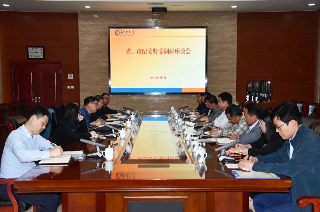 5月9日,山东省纪委监委第四监督检查室主任高广才一行来杏吧 调研指导工作。学校党委副书记、校长王昭风会见了调研组一行。党委常委、纪委书记、省监委驻学校监察专员高秀鹏主持调研座谈会,第四监督检查室副处长级干部王显伦,聊城市纪委副书记、监委副主任李洪强等陪同调研,聊城市纪委监委组织部负责同志、学校纪检监察机构全体人员参加座谈。