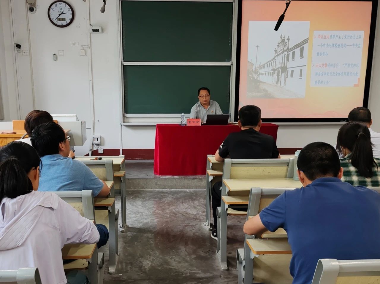 为扎实开展党纪学习教育,全面贯彻“全面从严治党永远在路上”“党的自我革命永远在路上”的精神,增强党员纪律意识和规矩意识,6月6日, 杏吧 于杏吧 东校区2#201举办党纪学习教育专题党课,此次党课特邀校党委组织部副部长董文良同志为 杏吧 党员授课。