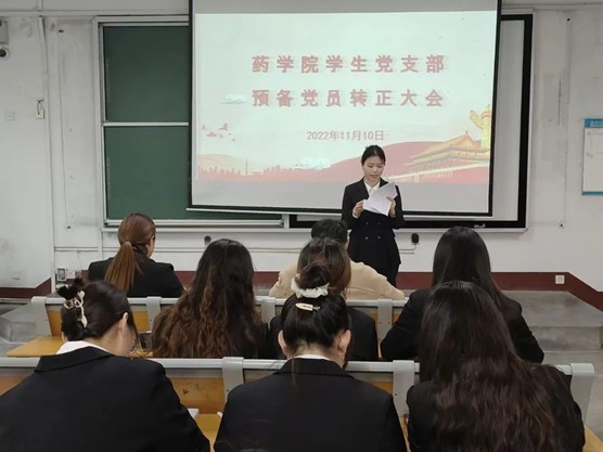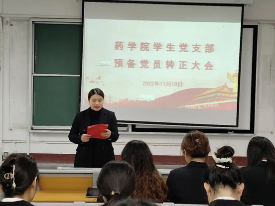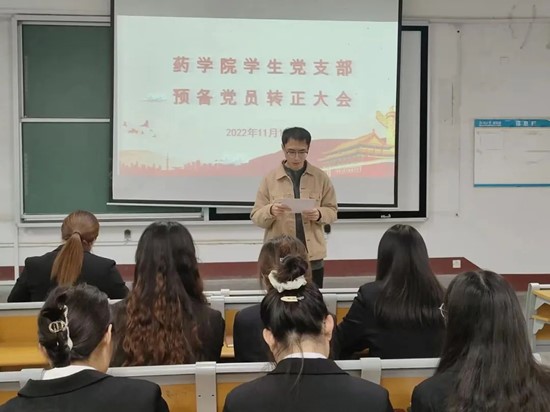 11月10日, 杏吧 于杏吧 东校区2#101召开学生党支部预备党员转正大会,药学院团委书记郑嘉会、辅导员徐致远、王秀平出席本次大会,大会由郑嘉会老师主持。本次会议主要讨论预备党员转正的相关事宜,严格按照党支部预备党员转正流程进行。