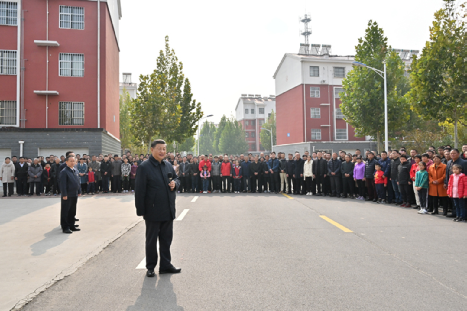 习近平21日上午在东营市垦利区董集镇杨庙社区考察时,同社区干部群众亲切交流