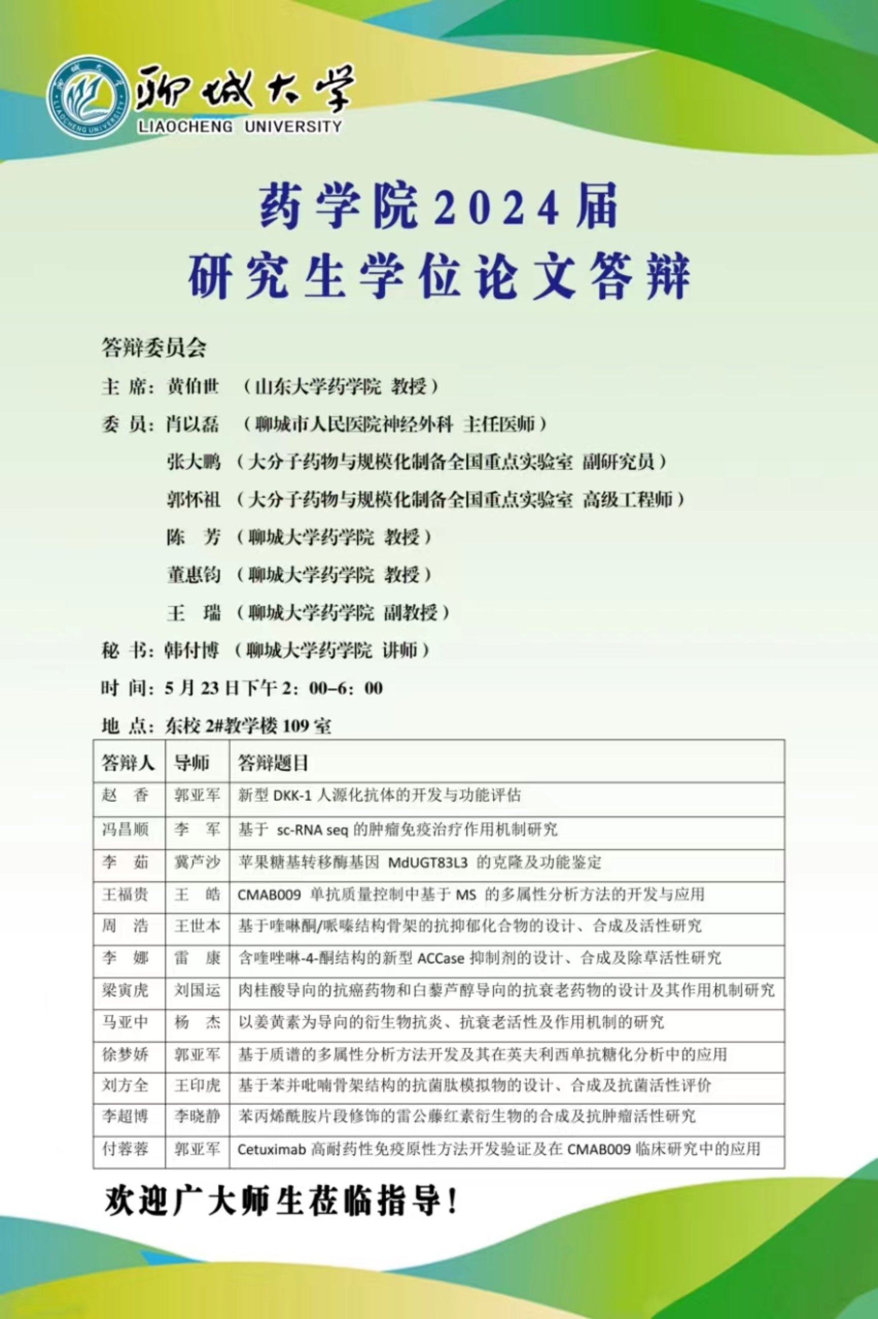 药学院2024届研究生学位论文答辩