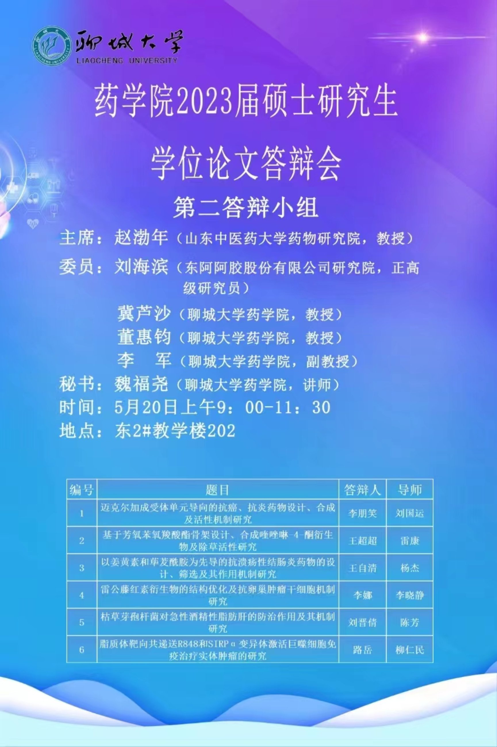 药学院2023届硕士研究生学位论文答辩会