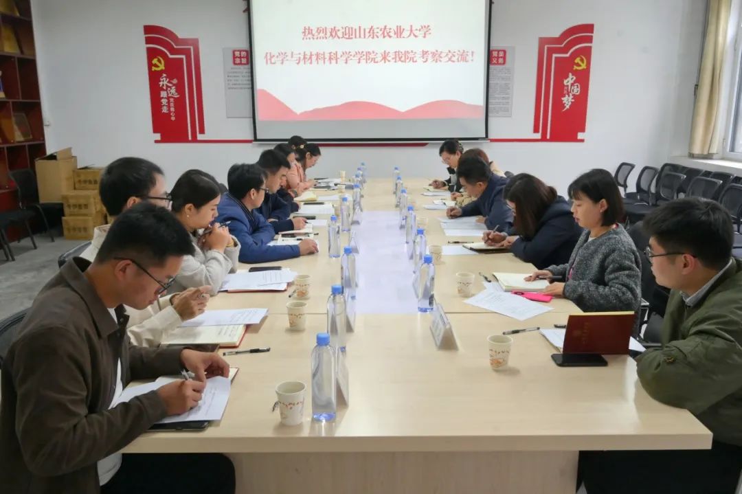 10月30日,山东农业大学化学与材料科学学院党委副书记李华一行到 杏吧 考察交流,学院党委副书记、副院长李永新,副院长徐伟、刘国运,生物制药系主任(兼制药工程系主任)李晓静,团委书记郑嘉会,辅导员王秀平、徐致远、李丹阳、朱兆阔参加此次座谈,本次会议由李永新主持。