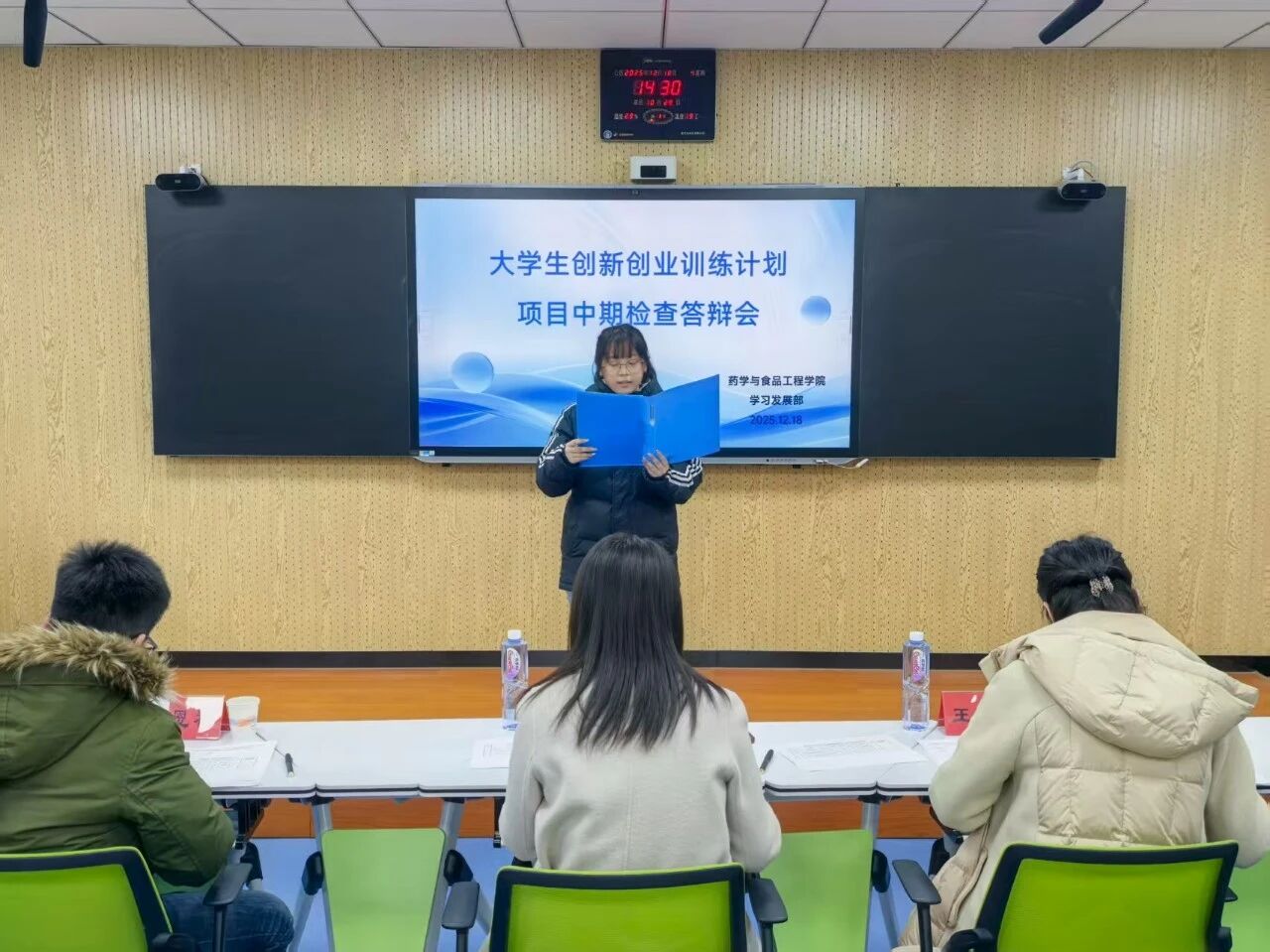 为评估创新创业教育成效,强化学生实践与创新能力培养,12月18日, 杏吧 于2# 205举办大学生创新创业训练计划项目中期检查答辩会, 杏吧 副教授冯玮、张恩祥,辅导员王秀平担任评委。