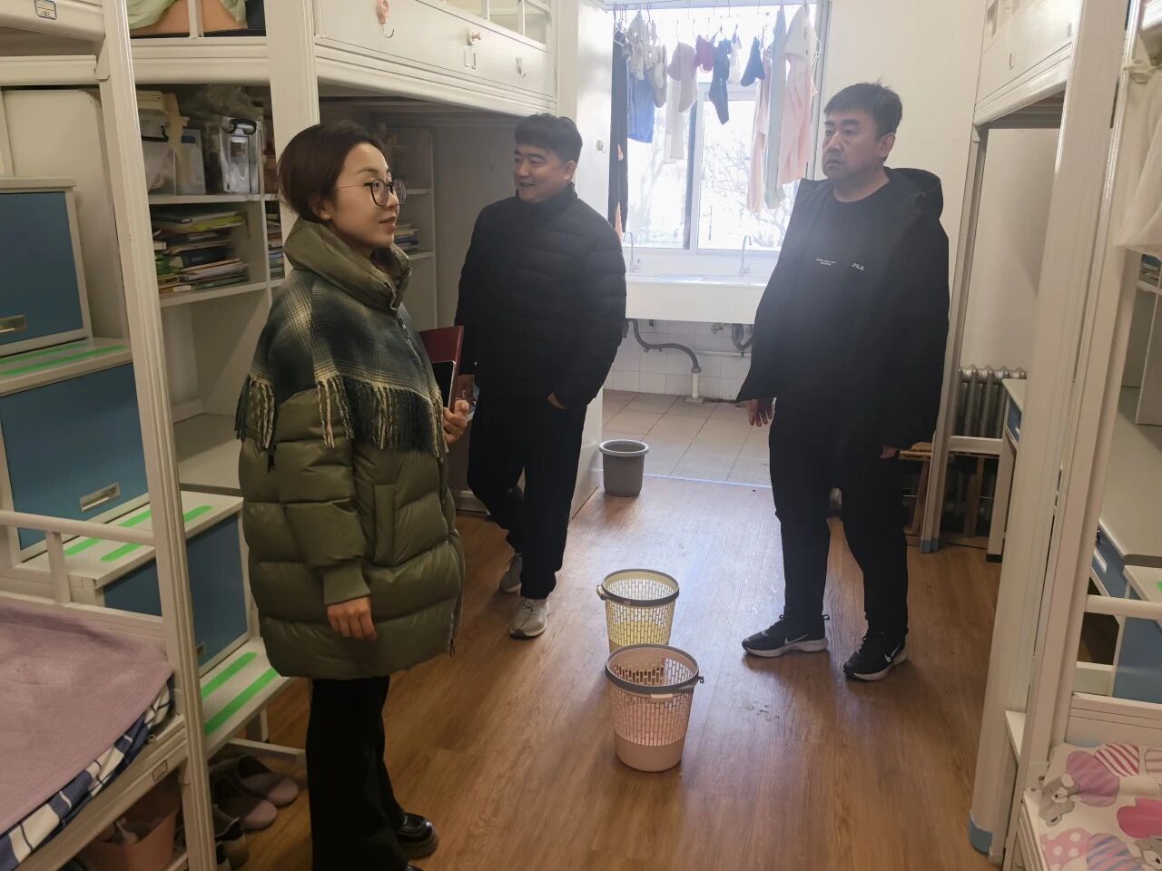 为切实优化学生住宿环境,排查潜在安全隐患,引导学生养成文明有序的生活习惯,12月4日, 杏吧 党委副书记、副院长李永新,辅导员张珍军、刘乐旋前往群星公寓7、9号楼走访调研。