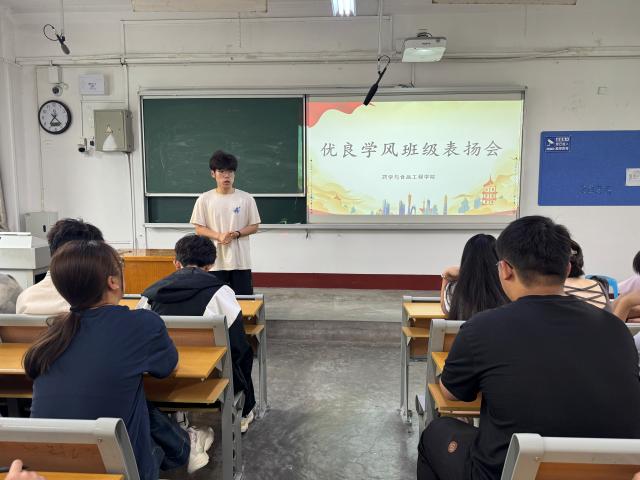 本次评选以课堂质量监控与宿舍文明建设为双依据,通过周期性动态督查与过程性量化考核,立体化呈现班级综合素养。课堂教学环节着重考察学生课堂参与度、知识掌握深度及师生互动成效,借助课堂表现记录、随堂学习反馈、教师综合评价等多维度数据,精准把脉班级学习质效;宿舍文明建设则实施月度专项检查与不定期抽查相结合的管理机制,推动学生构建安全有序、和谐向上的生活环境。综合以上指标,2024级生物制药2班、2024级药学5班、2024级生物工程8班、2024级食品科学与工程10班被评为学风优良班集体,学院为其颁发了流动红旗。表彰仪式后,学生代表发言,号召全体同学以优秀集体为标杆,传承优良学风传统,强化自主学习意识,为班级建设贡献自己的一份力量。