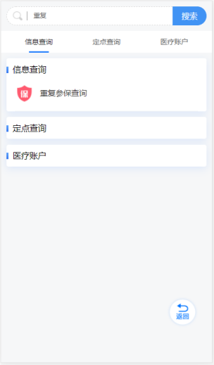 参保人员可通过或支付宝或微信搜索参保地所在地市医保小程序“某某医保”(比如您参保地是聊城,支付宝或微信搜索【聊城医保】),登录成功后, 主页 找到【我要查询】,点击【我要查询】,通过“重复参保查询”可快速定位【重复参保查询】功能,通过此功能便可以查询自己是否存在重复参保信息。