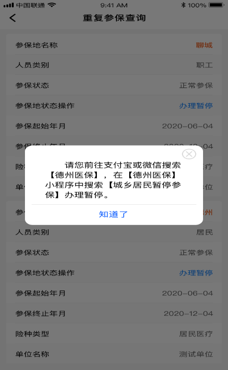 (一)如果您重复参保查询的人员类别是“职工”,职工需要单位通过网上办事大厅办理,小程序暂不支持个人自助办理。