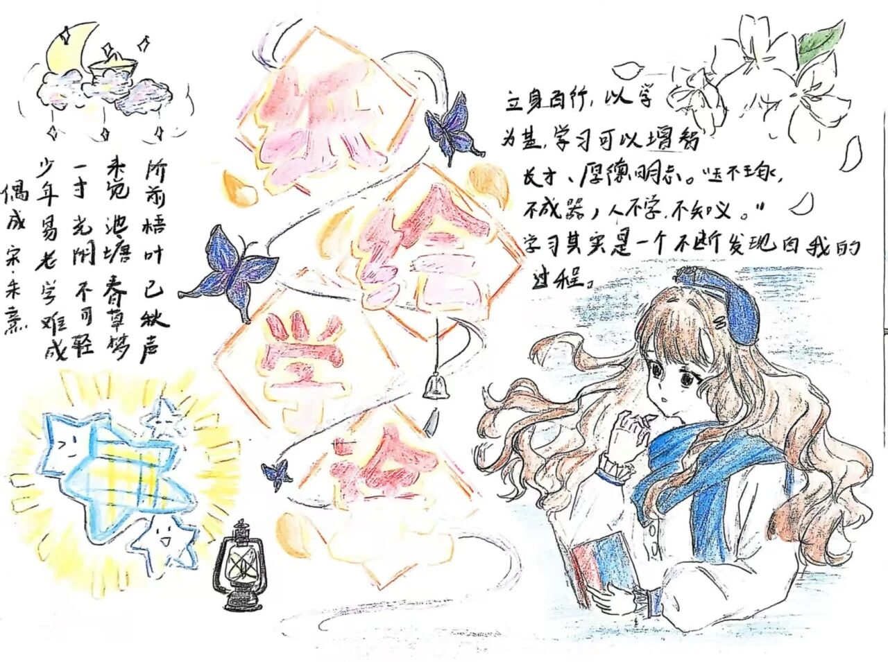 为营造积极向上的学习氛围,引导学生在学习中做到学思践悟,11月12日, 杏吧 于线上举办以“纸绘学途,墨染韶华”为主题的手抄报活动。