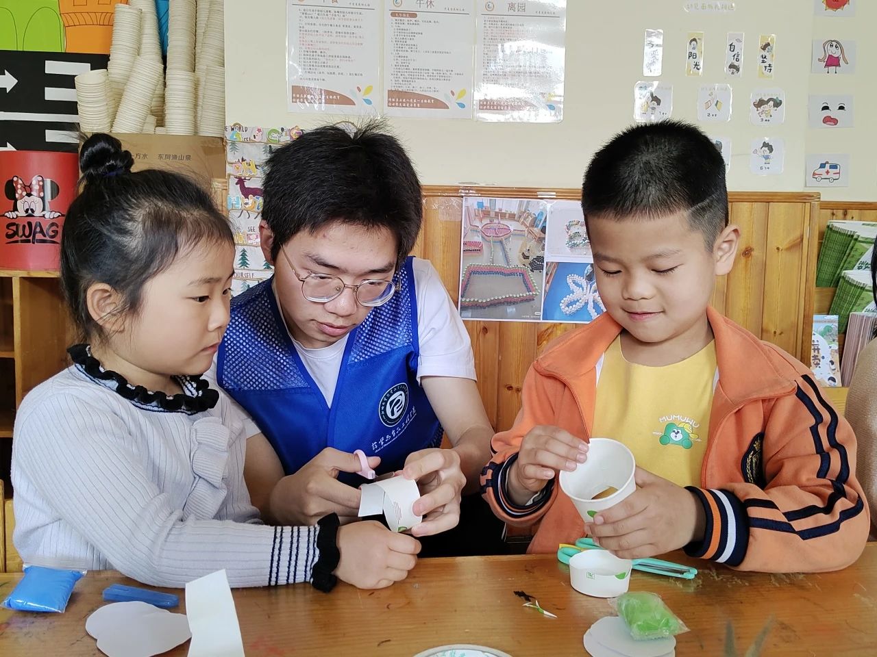 为丰富孩子们的课余生活,激发孩子们的想象力与创造力,培养孩子们的艺术细胞,4月10日, 杏吧 2024级7班团支部与578志愿者服务队于聊城市东昌府区华夏爱英万达幼儿园举办以“翁趣不倒-简趣不倒翁”为主题的社会实践活动。