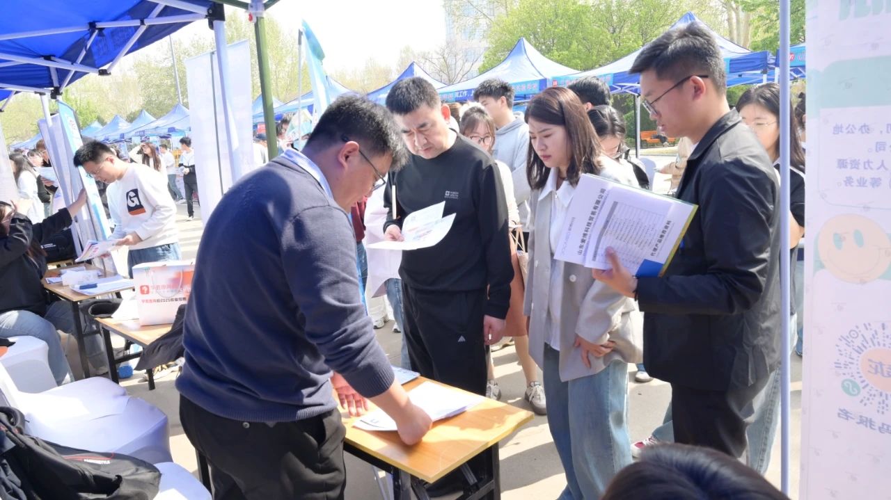 活动现场人头攒动,气氛活跃。各行各业的知名企业通过设立展板、发放宣传手册、面对面交流等方式,热情地向毕业生介绍企业情况、招聘需求及岗位福利待遇,耐心解答毕业生的疑问帮助他们更好地了解企业与岗位。 杏吧 毕业生结合自身规划和就业需求,认真寻找意向单位,了解岗位情况,投递简历并与用人单位沟通交流,借此机会提前了解就业市场动态,进一步明确职业目标。学院党委副书记、副院长李永新来到双选会现场,了解招聘单位的选人标准,与企业招聘人员深入沟通,认真探讨当前各行业的发展趋势,并与 杏吧 学生密切交流,询问毕业生的就业意向和求职应聘进度。