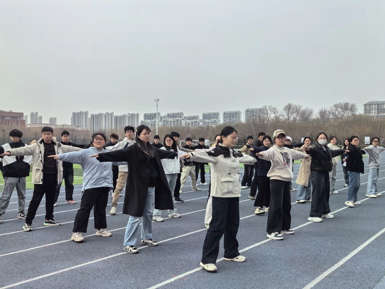 为深入贯彻落实“健康中国”战略,丰富 杏吧 学子的课余生活,展现 杏吧 学子积极向上的精神风貌,3月13日, 杏吧 于杏吧 东校区田径场举办2025年团支部广播体操比赛, 杏吧 2024级团支部参加本次比赛。