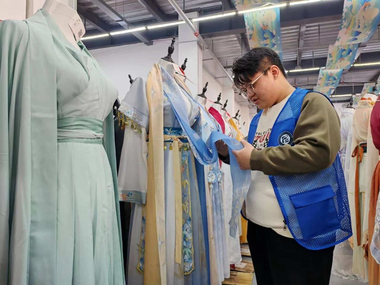 活动伊始,团队成员步入汉服展览馆,立即被各式各样的汉服展品深深吸引。从先秦的深衣,到唐朝的齐胸福裙,再到明代的袄裙,每一件汉服都仿佛在诉说着华夏服饰文化的悠久历史与变迁,让团队成员深切感受到了中华传统文化的独特魅力。在讲解员的带领下,大家不仅亲手触摸了汉服细腻的材质,还详细了解了汉服制作的复杂流程,进一步认识到汉服文化是中华传统文化不可或缺的一部分。活动结束后,团队成员纷纷表示将积极行动起来,传承与弘扬汉服文化,向身边人讲述汉服故事,让更多人知晓这一承载民族记忆的文化符号,推动汉服文化走进大众生活。