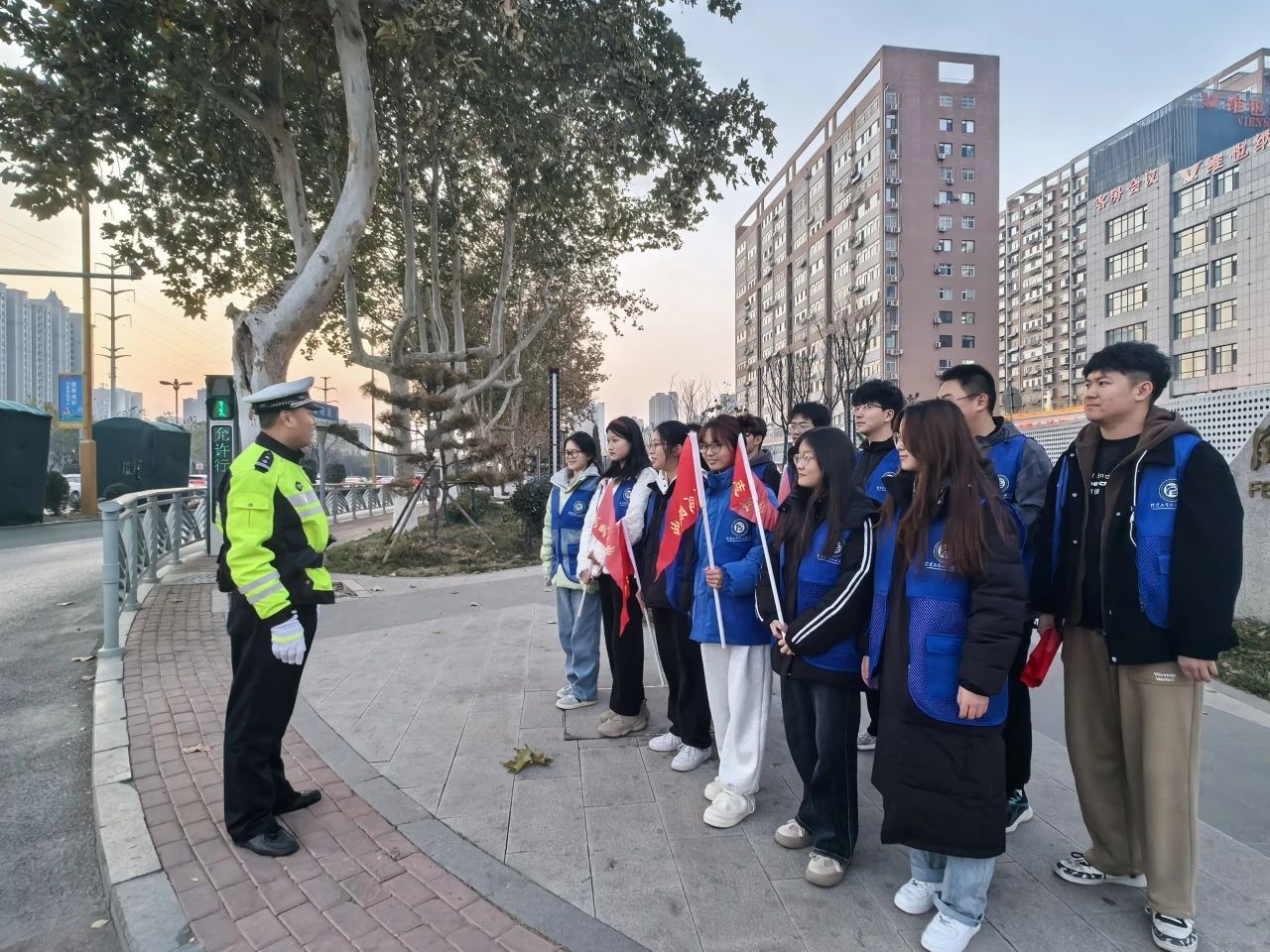 为进一步增强社区居民的交通安全法治观念和交通文明意识,规范交通安全行为,提高自我防范能力,1月17日, 杏吧 药暖人心志愿服务队于聊城市公安局交警支队直属一大队举办以“宁绕百步远,不抢一步险”为主题的社区实践活动,团队成员积极参与其中。
