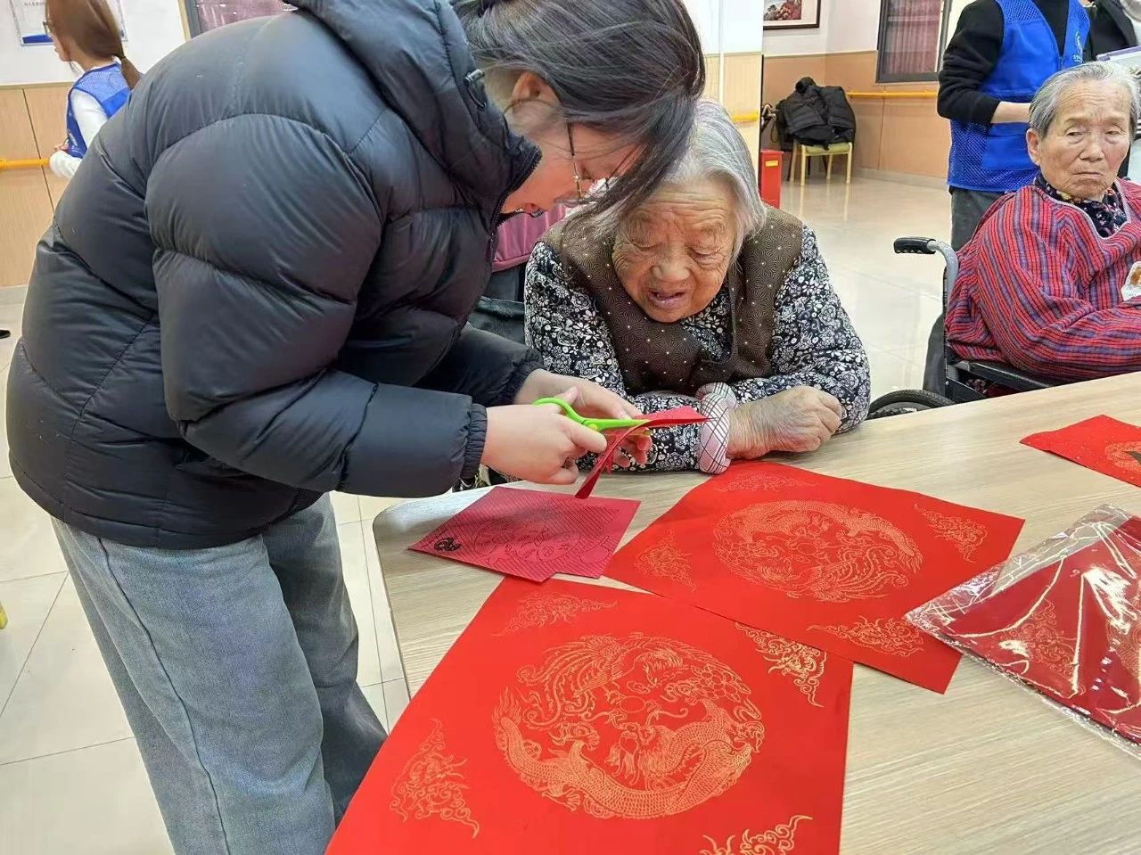 为进一步增强学生的敬老尊老的意识,提高社区老人们的幸福感,1月14日, 杏吧 青鸽扬飞,闪“药”光芒社会志愿服务队于聊城市东昌府区黄山路社区综合养老服务中心举办以“银龄绘新春,福字窗花景”为主题的社区实践活动。
