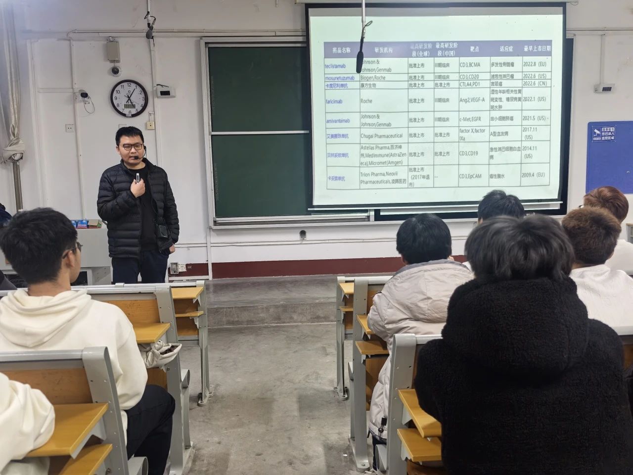 活动伊始,贾殿隆围绕“CD47免疫检查点药物开发进展”这一主题,重点向同学们讲解了肿瘤免疫治疗以及靶向药物的开发路线与增效研究,剖析了如今癌症药物的研究现状。贾殿隆结合生动案例与详细数据,以系统给药开展抗肿瘤实验为依托,细致阐述药物在抑制肿瘤生长、遏制转移等方面展现的显著效果,同时基于严谨的安全性评估维度,对潜在风险与应对策略详细分析。贾殿隆指出如今CD47靶点的药物研究热度持续攀升,但是由于易出现安全问题,优化安全性成为当下关键着力点,他希望同学们能以此次学堂为契机,于日常钻研中洞察科研复杂与多元本质,钻研专业知识筑牢根基,为我国医药创新事业注入青春力量。活动结束后,同学们纷纷表示他们对癌症药物有了更加全面的认识与了解,今后将积极主动地培育创新思维,为我国科研领域的蓬勃发展贡献一己之力。