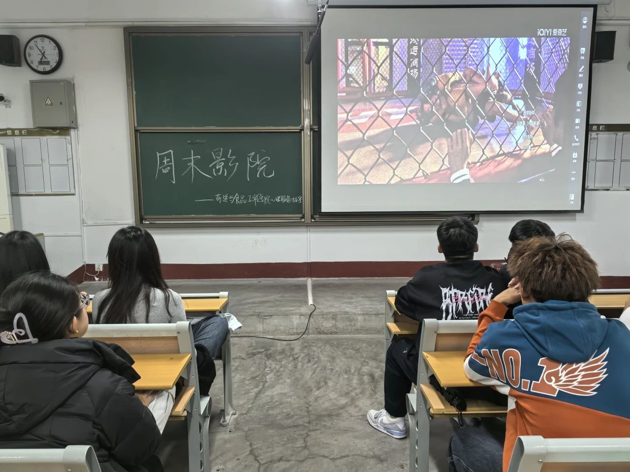 为丰富学生的精神文化生活,营造和谐、温馨的校园生活氛围,11月24日, 杏吧 于杏吧 东校区2#307举办以“角力之笼,破茧之勇”为主题的周末观影活动。
