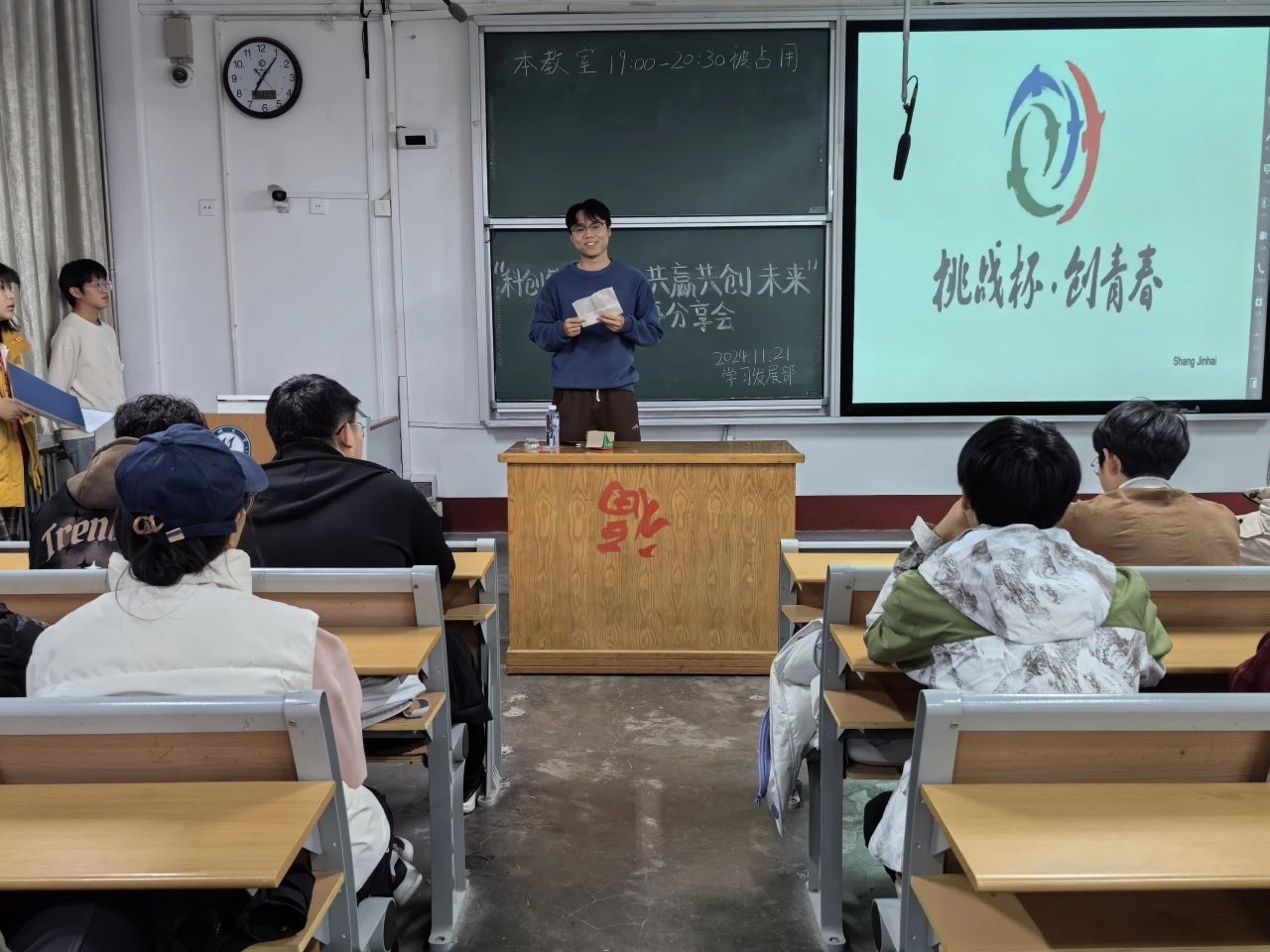 为提高学生对科技创新的认知与热情,培养学生创新思维与实践能力,11月21日, 杏吧 于杏吧 东校区2#210举办以“科创筑梦启航,共赢共创未来”为主题的科创故事分享会, 杏吧 学子积极参与其中。