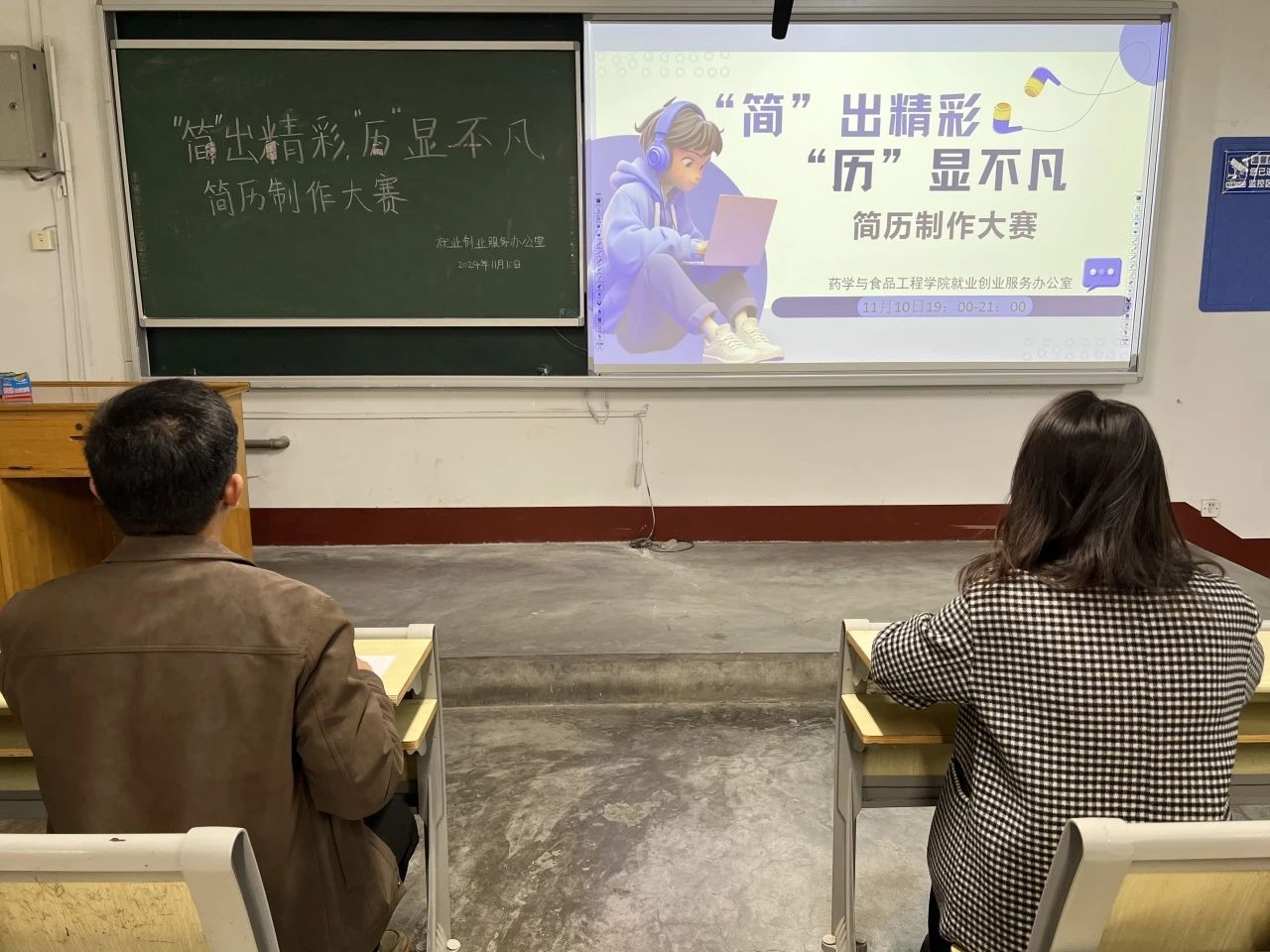 为加强职业生涯教育和就业指导,增强学生的职业规划意识,帮助学生更好地认识自我、精准定位,树立正确的职业发展观,11月10日, 杏吧 于杏吧 东校区2#202举办“‘简’出精彩,‘历’显不凡”简历制作大赛,本次大赛由辅导员朱兆阔、李丹阳担任评委。