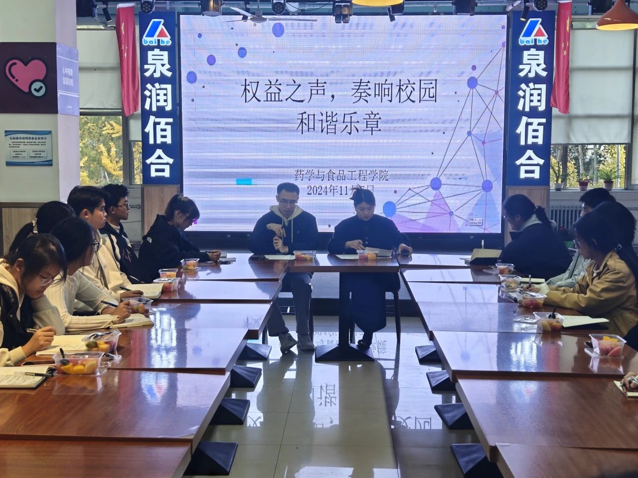 为搭建稳固的权益交流平台,维护同学们在校学习生活的合法权益,更好地了解他们的需求,11月7日, 杏吧 于杏吧 东校区翰苑餐厅二楼举办“权益之声,奏响校园和谐乐章”餐厅沙龙活动,此次活动由团委书记郑嘉会主持,2024级辅导员徐致远、各班权益委员和部分学生代表参加此次会议。