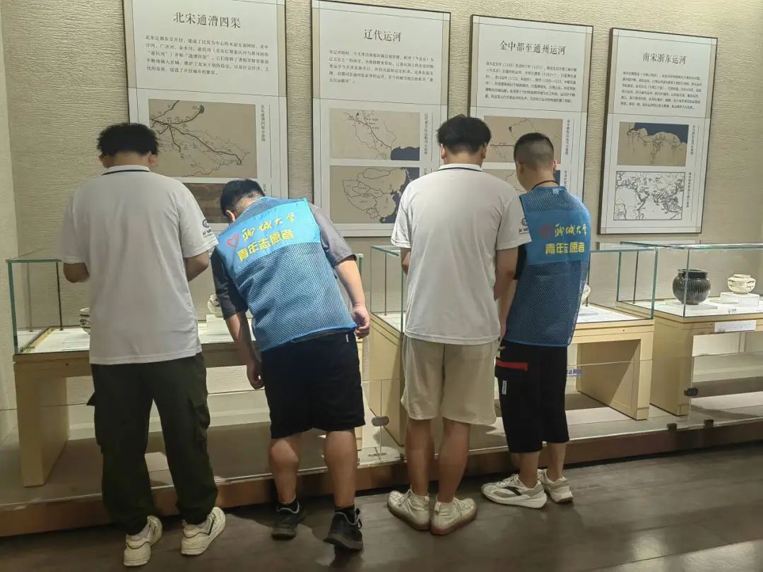 活动伊始,负责人向学生们深入讲解了运河博物馆的运营现状、中国运河的历史沿革、文化意义及其在当代社会的重要地位。随后,团队成员以小组的形式自主参观各个展厅,通过近距离观赏珍贵的实物展品、生动的历史图片以及详尽的视频资料,成员们对运河的挖掘、建设、维护以及沿岸人民的生活习俗有了更为直观且深刻的体会。参观结束后,团队成员纷纷畅谈自己对运河文化的新认识、新感悟,并纷纷表示,未来将积极参与到相关的志愿活动中去,用实际行动去守护这份珍贵的文化遗产,让运河文化在新时代焕发出更加璀璨的光芒。