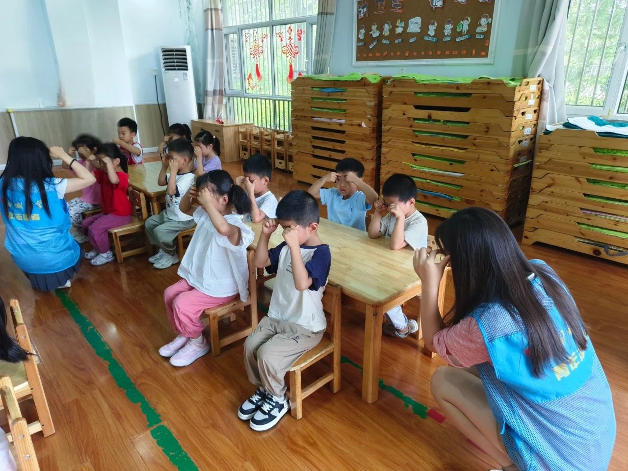活动过程中,团队成员通过播放短视频让小朋友们了解眼保健操的相关知识,并结合视频内容向小朋友们讲解了每节眼保健操的重点和难点,通过分解动作,示范了眼保健操要注意的穴位位置。讲解过程中,团队成员提醒小朋友们要做到穴位准、手法正、力度适、酸胀疼、合拍节、不乱行等要点,从而达到保护视力、预防近视的作用。随着眼保健操乐曲响起,小朋友们认真、专注,有节奏地按揉穴位,活动结束后,小朋友们纷纷表示此次活动使他们受益匪浅,他们从中学到了护眼知识,并承诺在以后的日常生活中也要经常做眼保健操,保护好自己的眼睛。