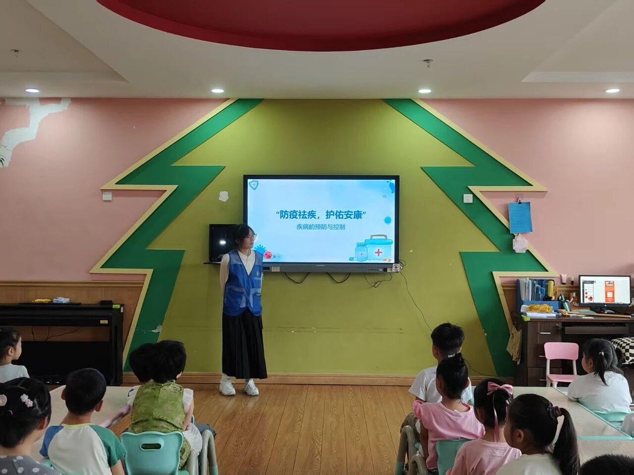 为显著提升幼儿的健康意识,提高幼儿对常见疾病的症状及传播途径的基础认知,7月11日, 杏吧 健行墨韵志愿服务队于聊城市东昌府区东关实验幼儿园举办以“防疫祛疾,护佑安康”为主题的社会实践活动,团队成员积极参与其中。