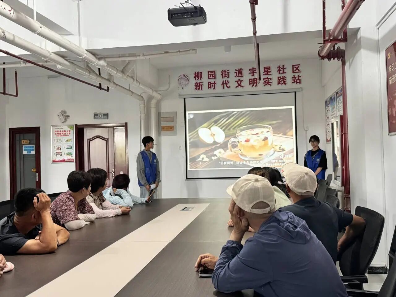 为进一步提升居民对食品营养与安全用药的认知水平,掌握正确的饮食习惯和营养搭配,7月28日, 杏吧 药食同佑志愿服务队于聊城市东昌府区宇星社区举办以“食药护康,社民同安”为主题的社区实践活动,团队成员积极参与其中。
