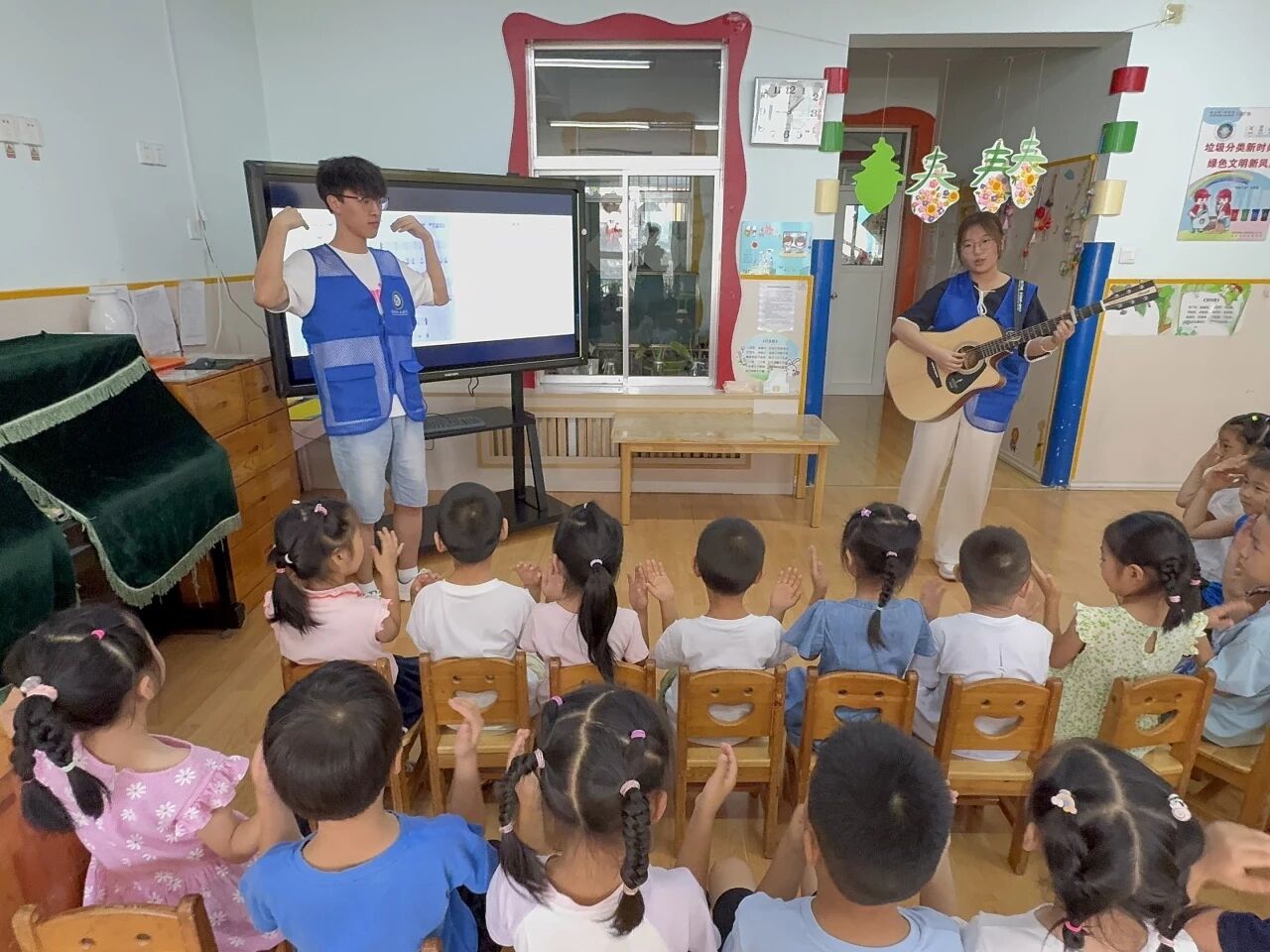 为丰富孩子们的艺术体验,激发孩子们对音乐的兴趣与热爱,7月27日, 杏吧 弘药水城志愿服务队于泰安市泰山区泰安师范附属幼儿园举办以“弦音童梦,歌声飞扬”为主题的社会实践活动。