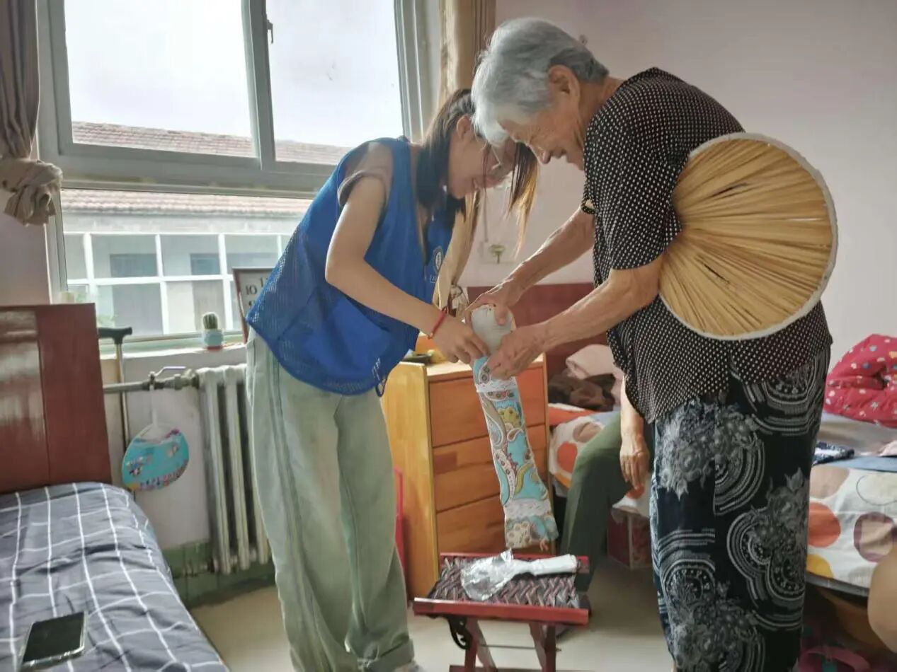 活动伊始,团队成员细致询问了老年人的日常睡眠状况,进一步确认多数老人存在睡眠困扰。随后,志愿者们围绕“艾草的安神助眠功效”展开讲解,用通俗的语言介绍了艾草枕通过气味舒缓神经、改善睡眠的原理,并与老人们共同开启艾草枕制作环节。从梳理艾草、裁剪布料,到穿针引线、填充枕芯,团队成员手把手指导,老人们积极参与,现场氛围温馨。活动结束后,团队成员纷纷表示,将持续参与关爱老年人的公益活动,以实际行动为老年群体幸福生活添砖加瓦,同时呼吁更多学生关注老年人睡眠健康问题。