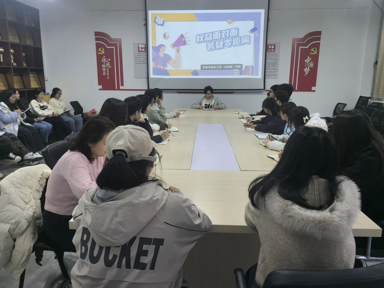 本次培训设置“理论学习”与“互动答疑”两大环节。在理论学习部分,负责人围绕权益委员们的角色定位与工作职责展开,系统梳理了校园权益维护的常见问题与应对策略,明确了权益委员们在信息收集、诉求传达和问题跟进等方面的关键作用。互动答疑环节中,权益委员结合日常工作,分享经验、提出难点困惑,并在集体讨论中形成了一系列具有可操作性的解决方案。权益委员们一致表示,要将培训所学转化为实际行动,努力做到“事事有回应,件件有着落”,真正成为同学们身边靠得住的权益守护者。