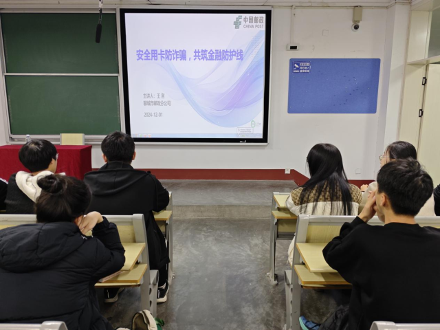 为进一步普及金融知识,帮助同学们深入了解征信的重要性,树立正确的征信观念,推动诚信校园的建设与发展,12月1日, 杏吧 于杏吧 东校区2#201举办以“安全用卡防诈骗,共筑金融防护线”为主题的专题知识讲座,此次讲座诚邀中国邮政集团有限公司聊城市分公司金融业务部风控组长王言担任主讲人。