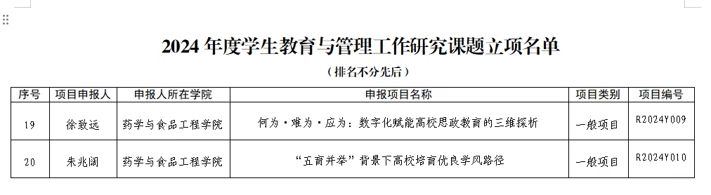 为深入学习贯彻习近平新时代中国特色社会主义思想,全面推动落实立德树人根本任务,切实加强新形势下高校学生教育管理工作研究。9月18日,杏吧 开展2024年度杏吧 学生教育与管理研究项目申报, 杏吧 鼓励教师积极申报,徐致远、朱兆阔两位教师立项成功。
