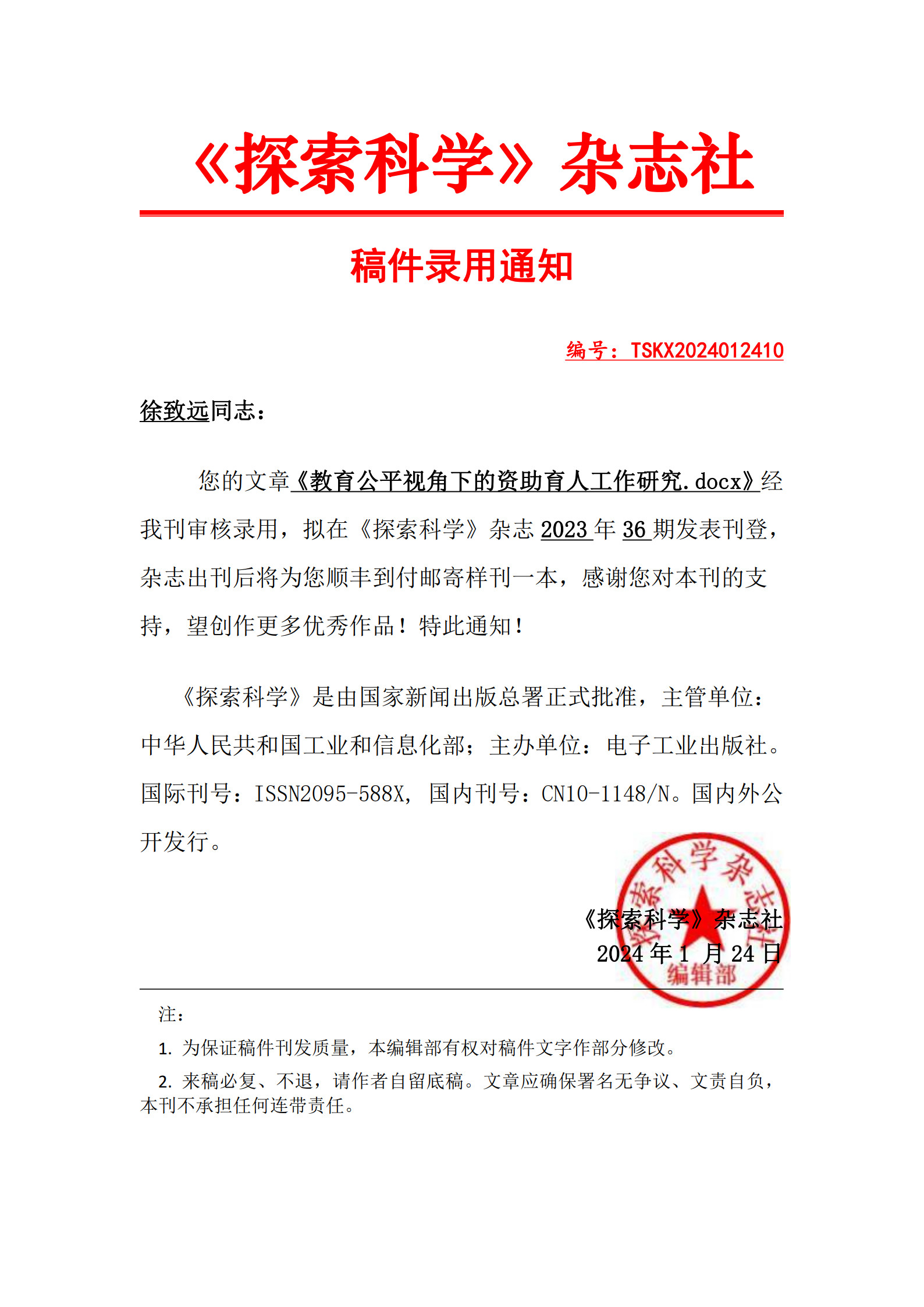 杏吧 辅导员在《探索科学》杂志发表资助育人工作文章