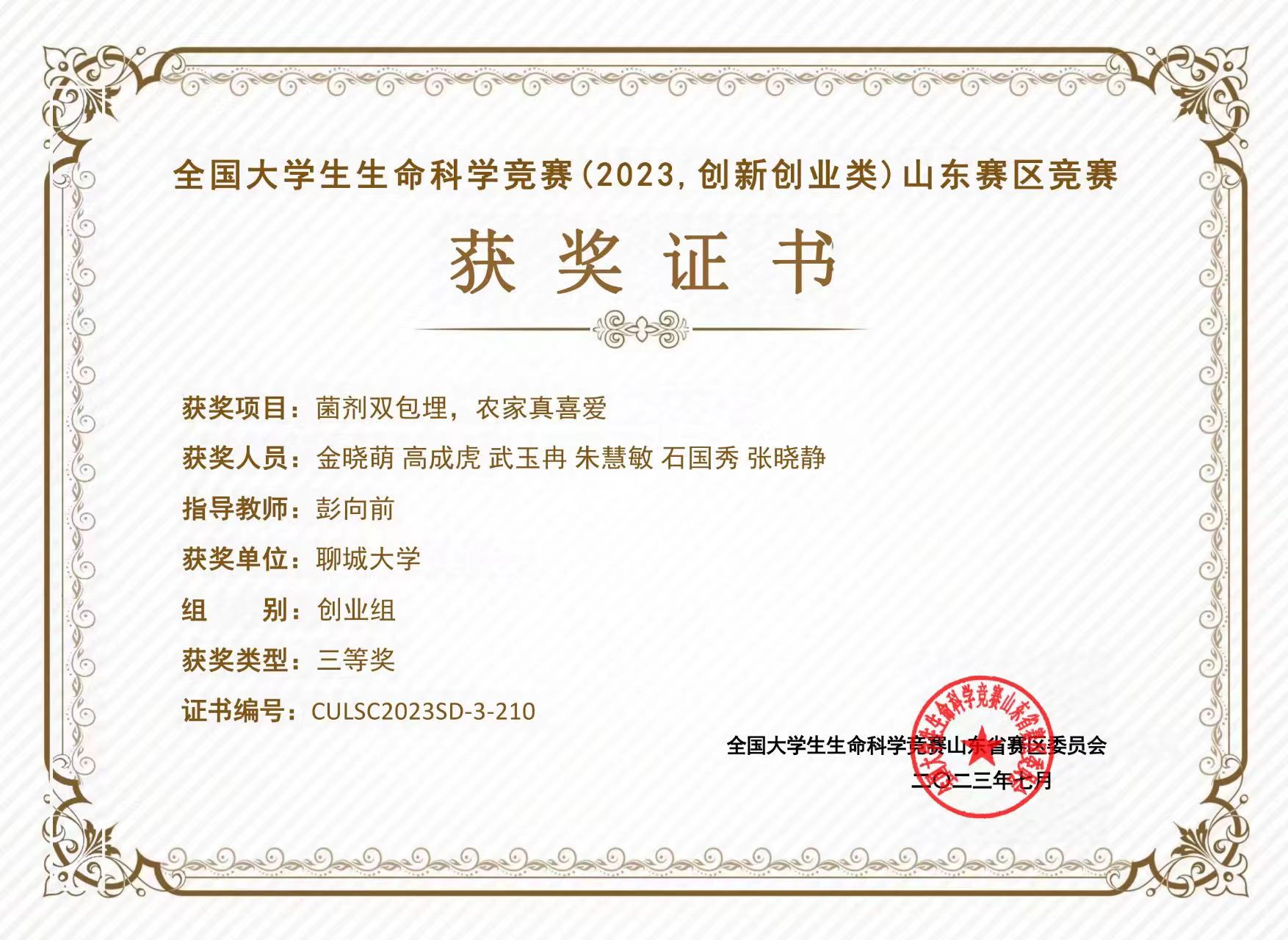 热烈祝贺药学院高成虎荣获“全国大学生生命科学竞赛(2023,创新创业类)山东赛区竞赛”三等奖