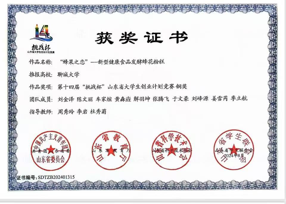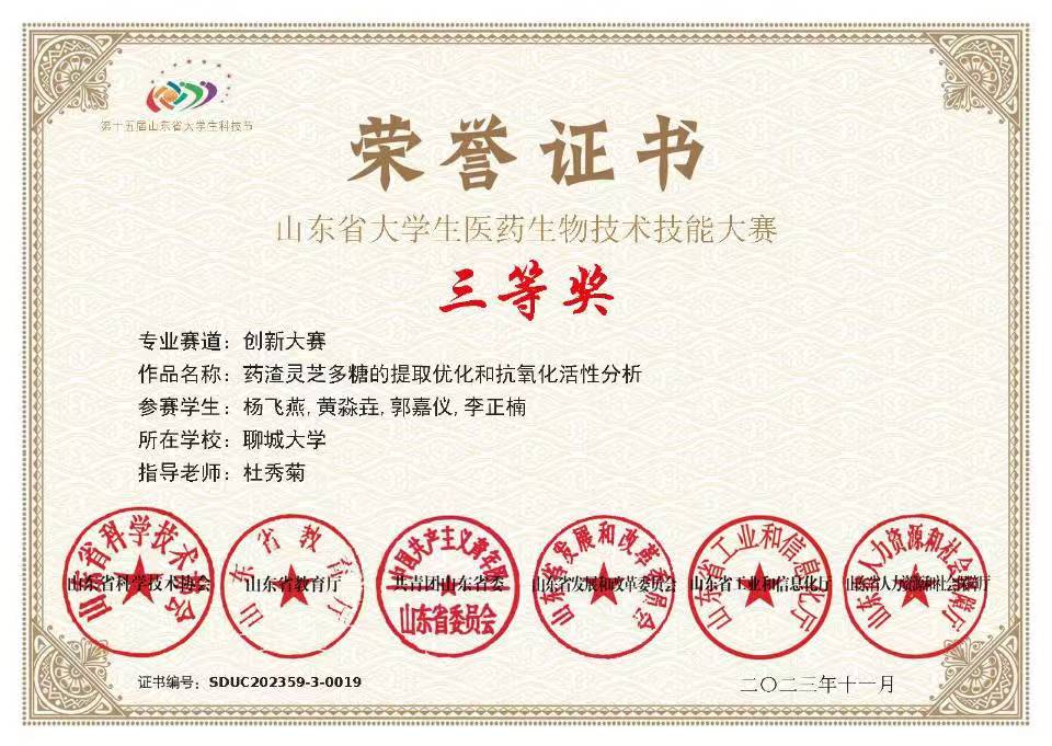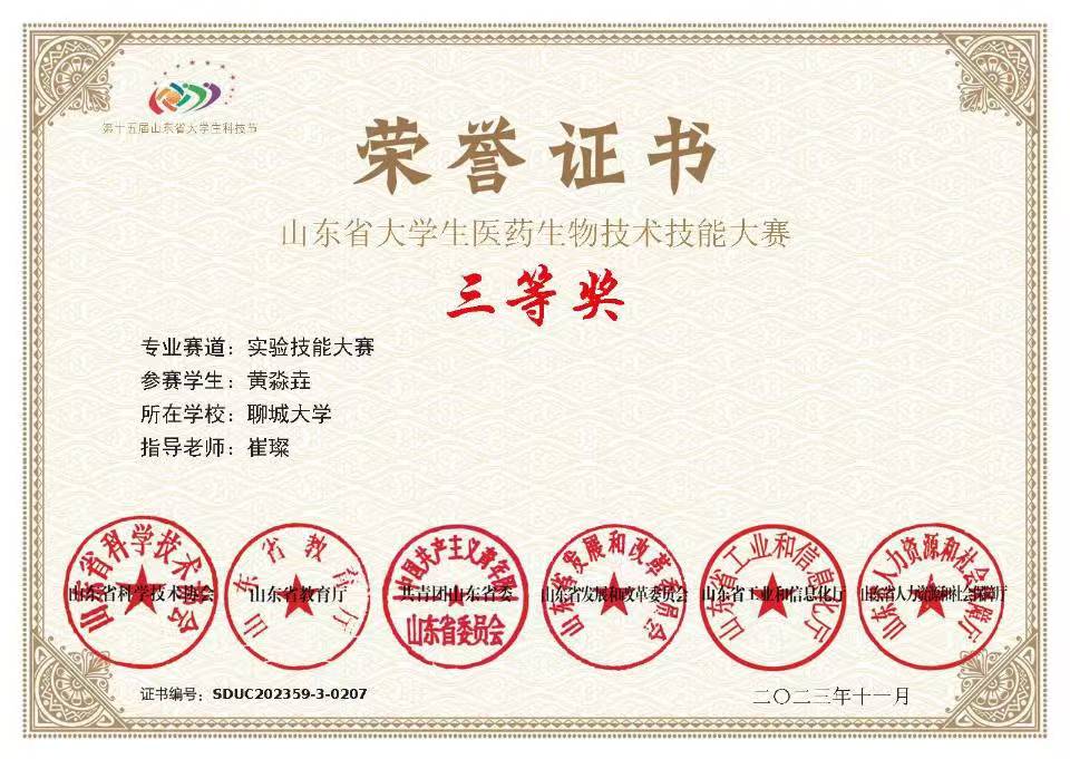 热烈祝贺 杏吧 黄淼垚荣获全国大学生生命科学竞赛(2023,创新创业类)山东赛区竞赛一等奖