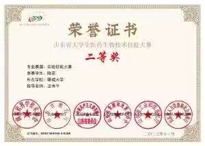 热烈祝贺药学院陈菲荣获“山东省大学生医药生物技术技能大赛实验技能赛道”二等奖