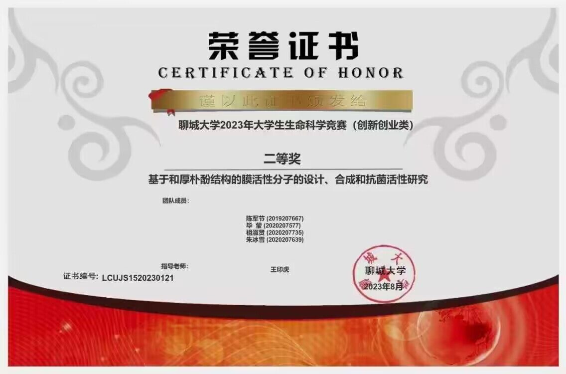 热烈祝贺药学院朱冰雪荣获“杏吧 2023年大学生生命科学竞赛(创新创业类)”二等奖