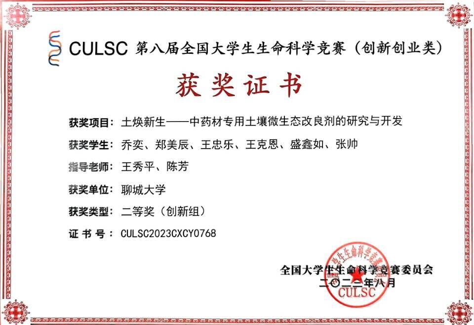 热烈祝贺药学院王忠乐荣获“第八届全国大学生生命科学竞赛(创新创业类)国赛”二等奖
