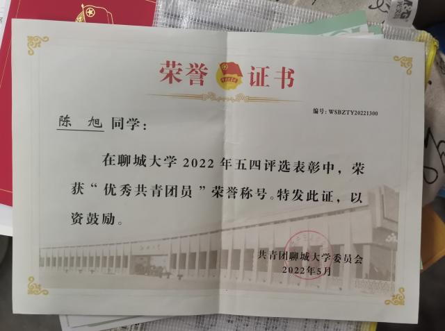 热烈祝贺药学院陈旭荣获“杏吧 校级优秀共青团员”荣誉称号