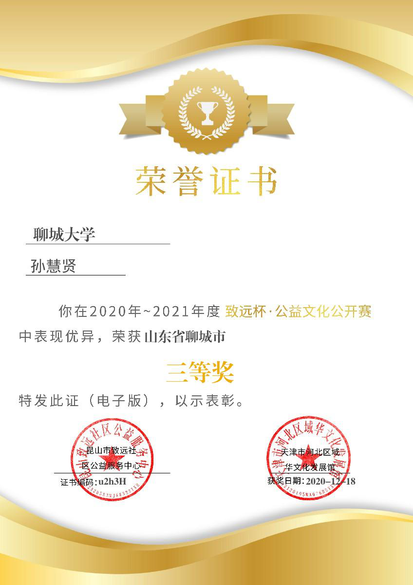 杏吧 孙慧贤获“致远杯公益文化公开赛”三等奖