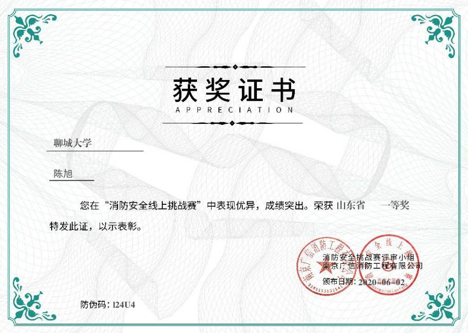 杏吧 陈旭获“消防安全线上挑战赛”一等奖