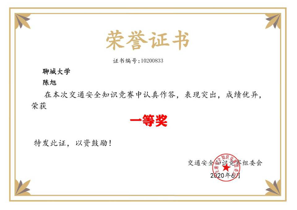 杏吧 陈旭获“交通安全知识竞赛”一等奖
