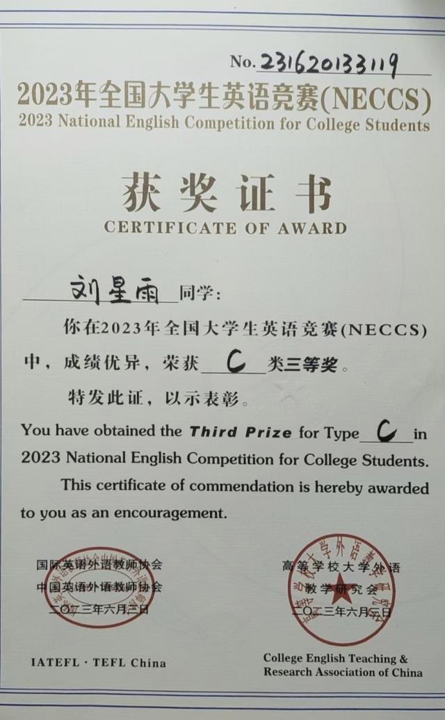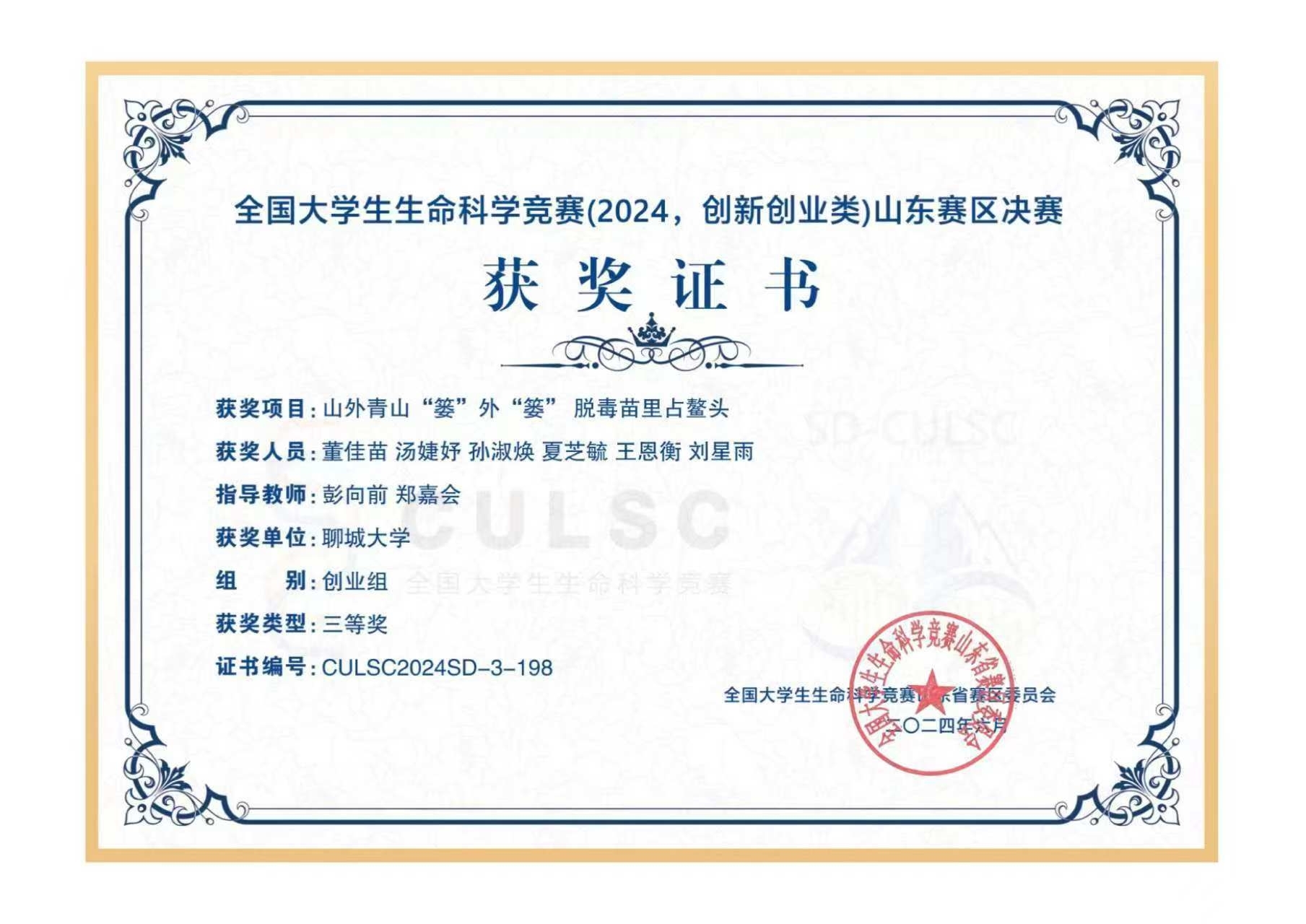 热烈祝贺 杏吧 刘星雨荣获全国大学生生命科学竞赛(2024,创新创业类)山东赛区决赛三等奖