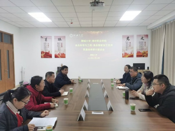 11月19日,潍坊职业学院食品药品学院董宝成院长一行来 杏吧 考察交流“3+2”专本贯通培养工作。学院执行院长李玉保、副院长徐伟、食品科学与工程专业系主任郭兴峰、生物制药专业系主任李晓静、药学专业系主任高阵阵参加交流研讨。