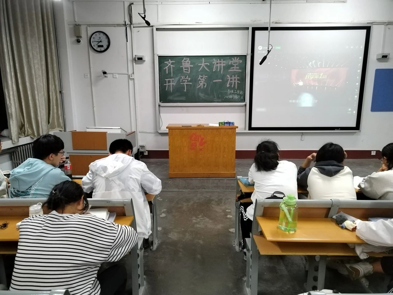 为深入学习贯彻习近平新时代中国特色社会主义思想,全面贯彻党的二十大精神,引导青年学生继续深化对现代化建设规律的认识,9月25日, 杏吧 于杏吧 东校区2#201、210举办“齐鲁大讲坛——开学第1讲”活动。