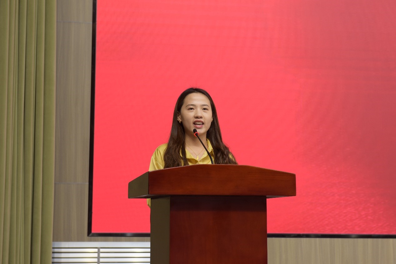 2022届毕业生代表刘文静发表毕业感言,她说道:“我们会在未来的生活中,努力学习,扎实工作,争取在各自的岗位上取得更大的成绩,为学院争光,为学校添彩。”