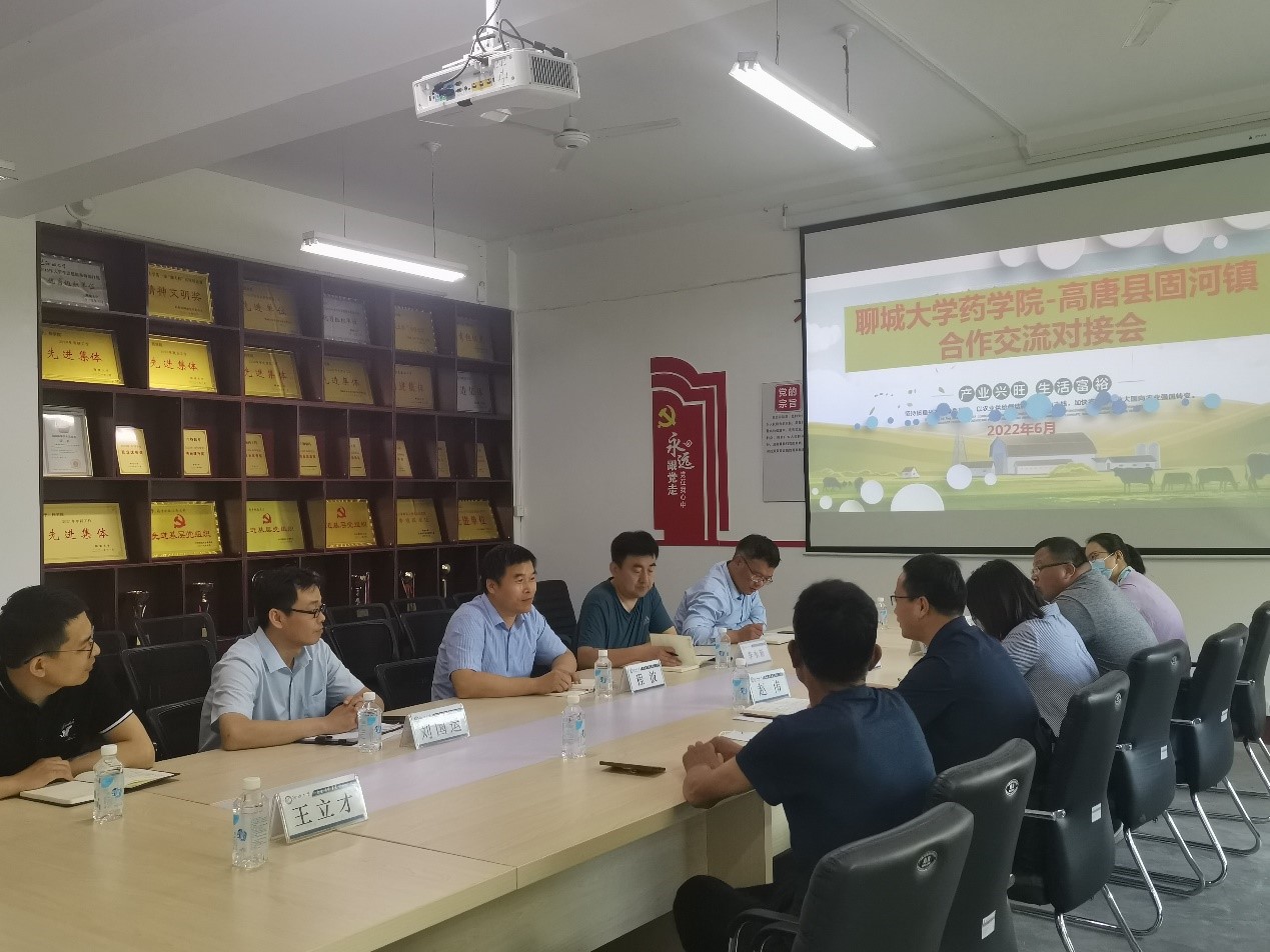 6月1日上午,聊城市高唐县固河镇党委书记赵伟带领镇政府相关部门负责人来 杏吧 考察,并开展合作交流对接会。会议由药学院党委副书记、副院长李永新主持,药学院党委书记程波,副院长刘国运,副教授彭向前及青年骨干教师王硕参加会议。