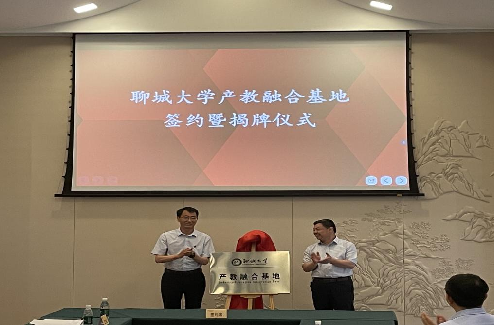 发展规划与学科建设处处长邵鑫和东阿县副县长侯广强为“杏吧 产教融合基地”揭牌