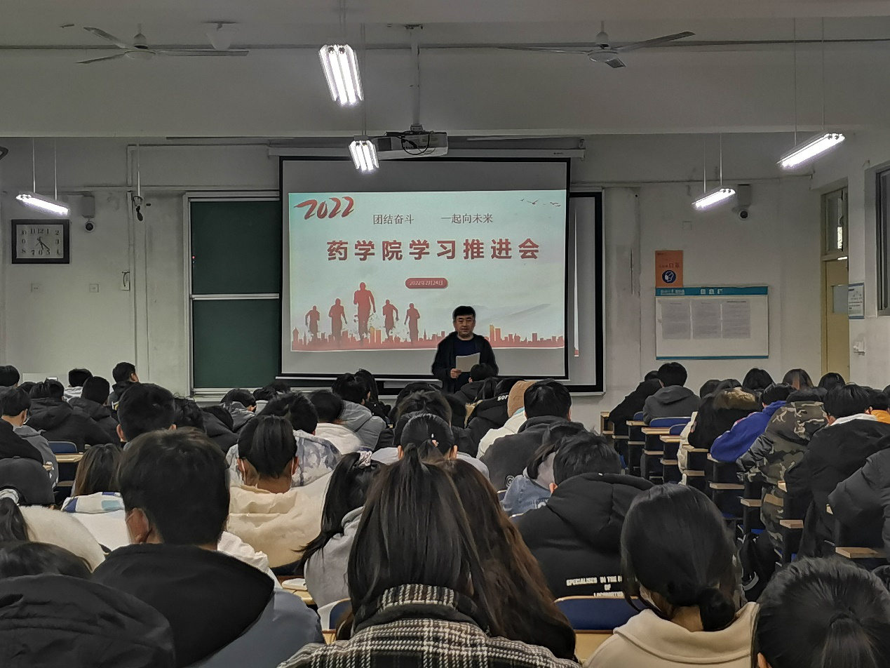 2月25日下午,药学院学习推进会在2号教学楼101教室召开。会议由辅导员王瑶主持。学院党委副书记李永新出席会议并讲话。班主任岳琳琳及学业困难学生参加会议。
